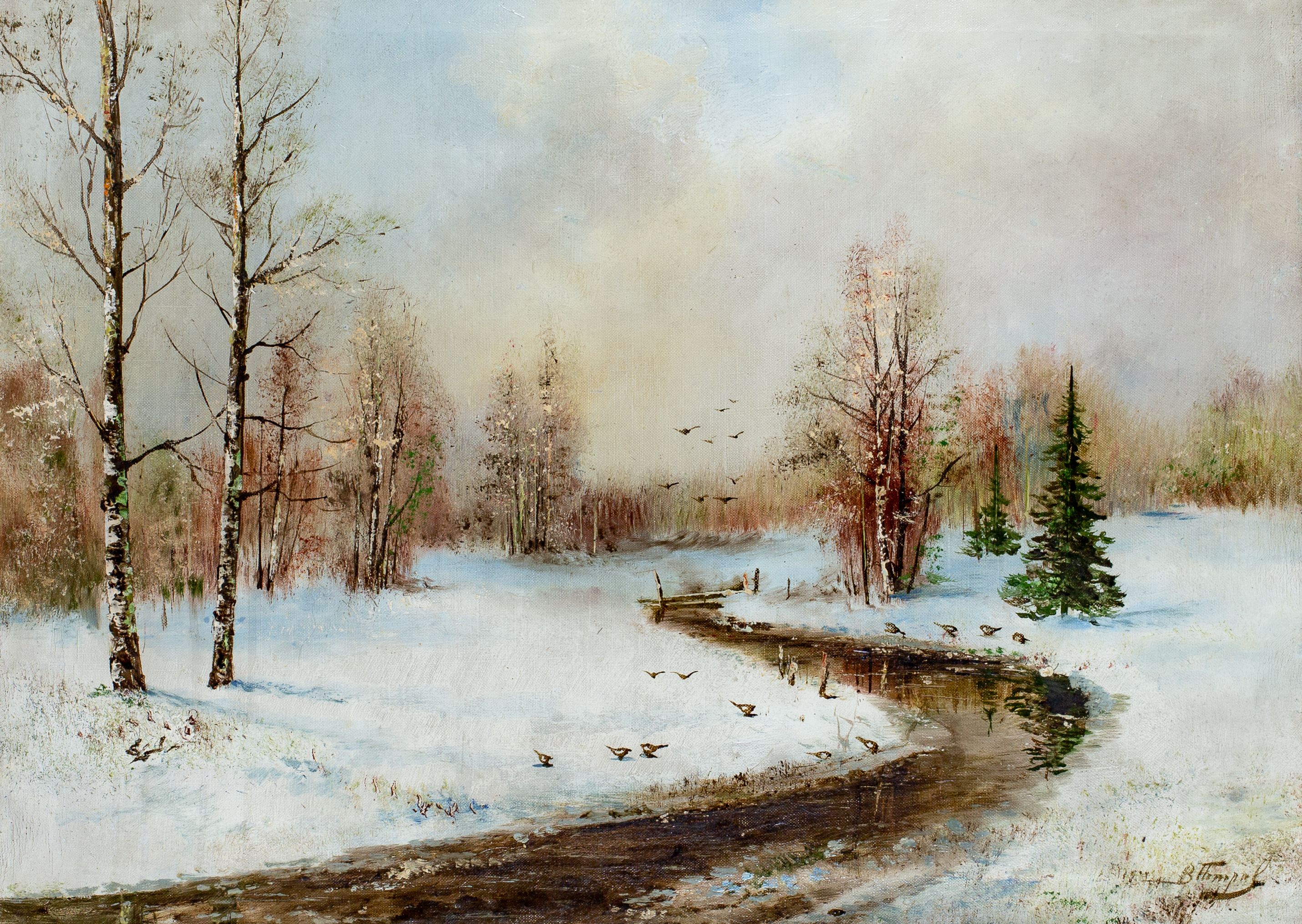 Холст / масло 50 x 86 см Происхождение: частная коллекция (Москва). Петров В. И. – русский пейзажист. Работал в XIX – 1-ой половине XX вв.